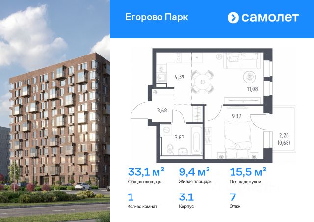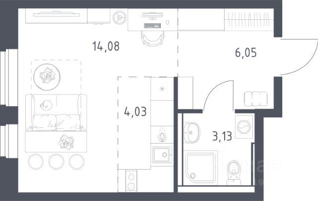 Общая площадь: 35.60 м.кв., Жилая площадь: 17.00 м.кв., Площадь кухни: 10.40 м.кв.