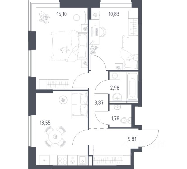 Квартира с кухней-гостиной и двумя спальнями в Квартале Герцена. Особенности планировки: предчистовая отделка. Квартиру можно купить онлайн. В квартире выполнена отделка "под чистовую". Установлены окна с двойным стеклопакетом, радиаторы с терморегуляторами. На полу цементно-песчаная стяжка. В квартиры заведены кабели для интернета и ТВ. Входная сейф-дверь не требует замены. Организован поквартирный учёт энергоресурсов (водоснабжение, отопление, электричество). Квартал "Герцена" расположен в Бирюлёве Восточном — районе на юге Москвы. Дорога до ТТК займет всего полчаса на автомобиле, до станции метро и ж/д станции "Царицыно" — 13 минут, а до автовокзала "Южные ворота" — 20 минут. До автобусных остановок можно дойти пешком. В 2027-2028 году откроется новая станция метро "Лебедянская", дорога до неё займет всего 18 минут. Общая площадь "Квартала Герцена" составляет 27,3 га. Дома состоят из разноуровневых секций высотой от 6 до 55 этажей с видовыми террасами и балконами. На территории квартала будет построена поликлиника, детский сад на 350 мест и воспитательно-образовательный комплекс на 1075 мест, а также рестораны, клиники, магазины и салоны красоты. Объявление от застройщика. Ипотека, материнский капитал. Обмен — один из способов покупки. Обмен подойдёт, если вы хотите быстро поменять старую квартиру на новую. Получить ипотеку или рассрочку, а также обменять квартиру можно онлайн. Запишитесь на онлайн-презентацию по телефону или на сайте. квартиры в нашей базе: ГРЦ01.2-Ж2.7.8.