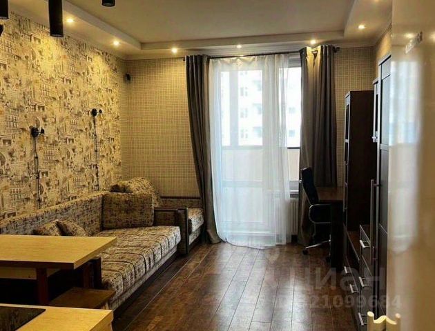 Квартира с хорошим ремонтом (сделана шумоизоляция стен, уложен бельгийский ламинат, в сан. узле оборудован теплый пол), фирменной мебелью и техникой (немецкая ванна "Kaldewei", кухня "Стильные кухни", гостиная "Артис", диван "Moon"), планировка следующая: зона кухни, зона ТВ со спальным местом, совмещенный санузел, прихожая, лоджия.
