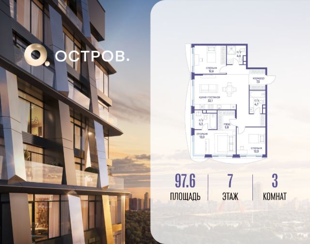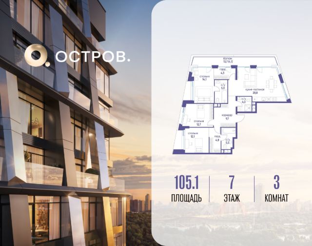 Скидка до 8% действует до 15.04.2026 г. при 100% оплате и не субсидированной ипотеке. Продаётся четырехкомнатная квартира от застройщика: общая площадь 125.90 м², жилая 48.40 м², кухня 46.10 м², 7, жилой квартал "Остров 7", корпус 4 (7 квартал) (секция 1). срок сдачи: 4-кв. 2025. , 3 санузла: 3 совмещенных. В жилой зоне 2 больших окна на одну сторону, хорошая инсоляция. Позвоните сейчас и забронируйте квартиру! Купите квартиру в доме у прибрежного парка, в квартале ОСТРОВ.7. Это семь корпусов премиум- и бизнес-класса в одном из лучших мест ОСТРОВА - между бульваром и парком, поблизости от реки. Стильные корпуса имеют узнаваемый вид благодаря бионической пластике фасадов, приподнятых над землей. Для жителей предусмотрены детский клуб, фитнес-рум, коворкинг, переговорные, лаунжи. На крышах устроены видовые общественные пространства с зонами для отдыха и спорта. Двор расположен на двух уровнях: нижний ландшафтный парк и верхняя городская терраса. ОСТРОВ.7 - часть жилого комплекса на западе Москвы, в 15 минутах езды от центра. Это настоящий заповедник посреди большого города, в окружении реки и 650 га заповедников. Здесь все необходимое находится по соседству: от детского сада до супермаркета, от фитнес-зала до серфинг-центра. На территории созданы все условия для отдыха и общения: клубная инфраструктура в домах и дворы-парки, набережные и променады, маршруты для спортсменов, детей и возрастных жителей. В нескольких минутах ходьбы расположена станция метро "Терехово" БКЛ. На автомобиле - 10 минут до Москва-Сити и 15 минут до Садового кольца.