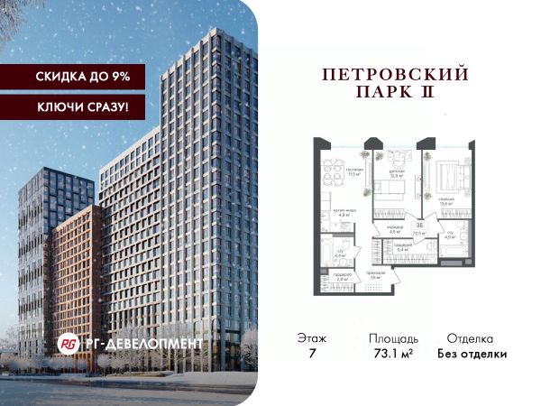 Дом сдан. Ключи в день покупки! В продаже 2-комнатная квартира площадью 70.20 м² с предчистовой отделкой на 7 этаже 49 этажного дома в корпусе Кристалл. ЖК Симфония 34 - концептуально новый жилой комплекс премиум-класса с подземной парковкой, состоит из четырех башен высотой 36 - 54 этажа. Квартиры сдаются с базовой (предчистовой) отделкой MR BASE или дизайнерской чистовой отделкой MR READY. Высота потолков 3 - 6 метров, окна высотой до 2,6 м. Более 100 кладовых в подземной части ЖК и более 500 на этажах. Безопасность - Система контроля входа на территорию комплекса, биометрия - Система автоматического водяного пожаротушения и противопожарного водопровода, система пожарной вентиляции - Доступ на парковку при помощи системы распознавания автомобильных номеров, карточка для контроля доступа резидентов - Система видеонаблюдения - Круглосуточная связь через приложение, телефон, голосовые сообщения с охраной, консьержем, call-центр. Расположение Пешком - 6 минут до метро "Дмитровская" - 15 минут до Тимирязевского парка На машине - 5 минут до Савеловского вокзала и Аэроэкспресса в Шереметьево - 10 минут до Москва-Сити и Садового кольца Благоустройство - 70% территории отведены под зеленые насаждения и ландшафтный дизайн - Приватный Японский сад - Детские площадки с зонированием по возрасту - Clubhouse для резидентов - Wellness & SPA - Зона для пикника, зона с гамаками - Центральное лобби, ресторан, коммерческие помещения - Дополнительный вход/выход на территорию комплекса Окружение - В 10 минутах от Симфония 34 находится дизайн-завод Flacon, где регулярно проходят культурно-образовательные и развлекательные мероприятия - Тимирязевский парк расположен в 850 м. Площадь парка 232 га - Рядом расположен парк "Дубки", площадью 16,5 га. - В 15 минутах расположен Хлебозавод 9. Здесь находятся шоурумы брендов, кафе разных кухонь мира, образовательные проекты и площадки для мероприятий Компания MR предлагает своим клиентам специальные условия приобретения квартир в рамках программ ипотечного кредитования от банков-партнеров.