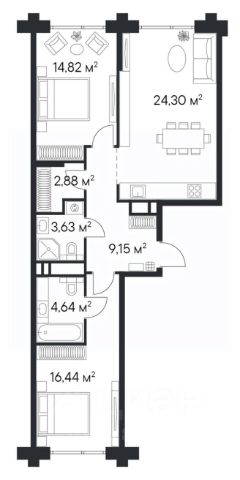 Продаётся 3-комнатная квартира 302, площадью 66,22 м², на 7 этаже в ЖК "Beluck Коломенское" корпус 1. Стоимость — от 27958802 руб. Квартира white box, планировка угловая, окна на улицу.