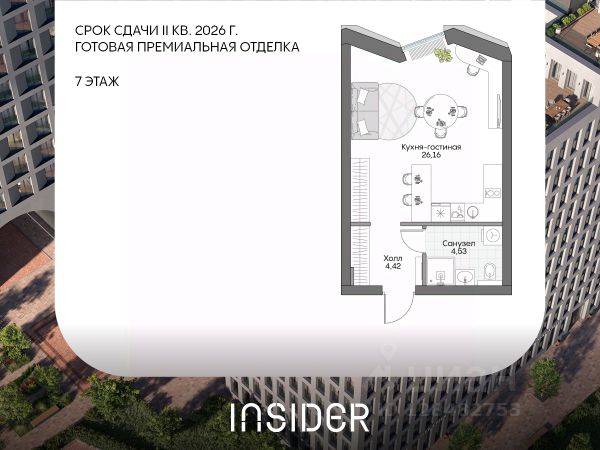 Продается квартира студия площадью 19.80 кв.м на 7 этаже 43 этажного монолитно-кирпичного дома в ЖК "ЗИЛАРТ" от Группа ЛСР. ЗИЛАРТ СПАРК — новый дом бизнес-класса в жилом квартале "ЗИЛАРТ" высотой 150 метров. Он сочетает в себе современную архитектуру, передовые технологии и восхитительные виды на ландшафтный парк "Тюфелева Роща" и бульвар Братьев Весниных. Близкое расположение к музейно-выставочному центру "Коллекция" и концертному залу создает вдохновляющую атмосферу места, где переплетаются жизнь и творчество. ЗИЛАРТ СПАРК расположен в престижном Даниловском районе. В пешей доступности находятся несколько станций метро: "Тульская", "Автозаводская", "Технопарк" и недавно открытая "ЗИЛ" Троицкой линии, с которой можно пересесть на одноименную станцию МЦК, а позже и на станцию "ЗИЛ" Бирюлевской линии (открытие запланировано на 2028 год). В пешей доступности есть вся необходимая инфраструктура: супермаркеты, салоны красоты, уютные кафе и рестораны, спортивные студии, места для досуга, отдыха и развлечений. На благоустроенной набережной Марка Шагала располагается действующий причал "ЗИЛ". Жилой комплекс даст возможность прогуляться по живописной набережной, просторному парку и бульвару. Любители здорового образа жизни и спортсмены оценят современные площадки для спортивных игр и фитнес-центр с бассейном. Молодые родители будут спокойны за настоящее и будущее детей благодаря современной образовательной среде. В "ЗИЛАРТе" расположена одна из самых больших школ России на 2,5 тысячи учеников.