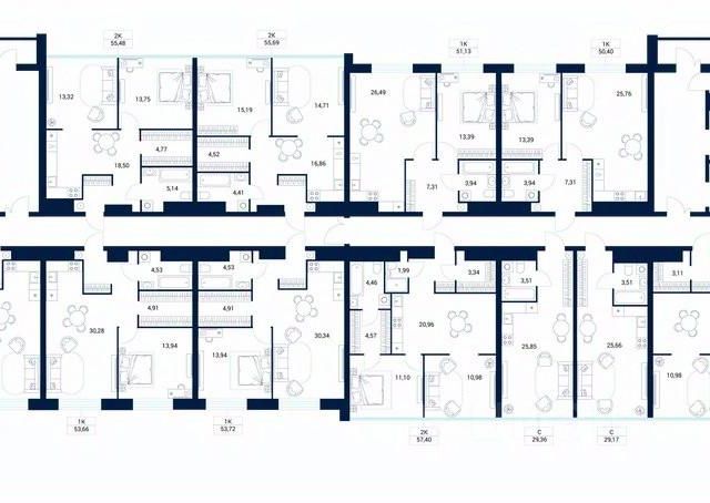 Продаются 1-комнатные апартаменты 50.4 кв.м. на 8-м этаже 20-этажного комплекса.