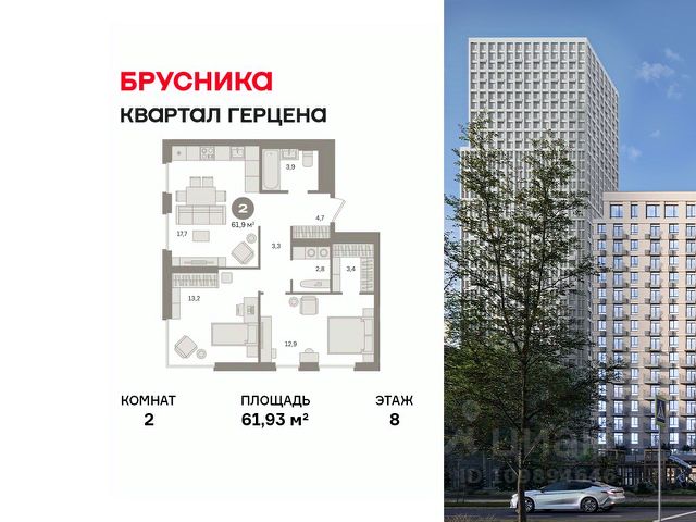 Квартира с кухней-гостиной и тремя спальнями в Квартале Герцена. Особенности планировки: предчистовая отделка. Эта квартира сейчас в брони, но её ещё не купили. Пожалуйста свяжитесь с менеджером, чтобы узнать подробности. Квартиру можно купить онлайн. В квартире выполнена отделка "под чистовую". Установлены окна с двойным стеклопакетом, радиаторы с терморегуляторами. На полу цементно-песчаная стяжка. В квартиры заведены кабели для интернета и ТВ. Входная сейф-дверь не требует замены. Организован поквартирный учёт энергоресурсов (водоснабжение, отопление, электричество). Квартал "Герцена" расположен в Бирюлёве Восточном — районе на юге Москвы. Дорога до ТТК займет всего полчаса на автомобиле, до станции метро и ж/д станции "Царицыно" — 13 минут, а до автовокзала "Южные ворота" — 20 минут. До автобусных остановок можно дойти пешком. В 2027-2028 году откроется новая станция метро "Лебедянская", дорога до неё займет всего 18 минут. Общая площадь "Квартала Герцена" составляет 27,3 га. Дома состоят из разноуровневых секций высотой от 6 до 55 этажей с видовыми террасами и балконами. На территории квартала будет построена поликлиника, детский сад на 350 мест и воспитательно-образовательный комплекс на 1075 мест, а также рестораны, клиники, магазины и салоны красоты. Объявление от застройщика. Ипотека, материнский капитал. Обмен — один из способов покупки. Обмен подойдёт, если вы хотите быстро поменять старую квартиру на новую. Получить ипотеку или рассрочку, а также обменять квартиру можно онлайн. Запишитесь на онлайн-презентацию по телефону или на сайте. квартиры в нашей базе: ГРЦ01.2-Ж4.8.1.