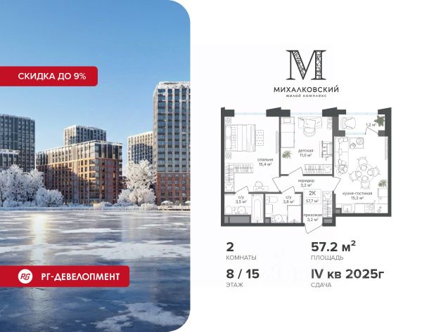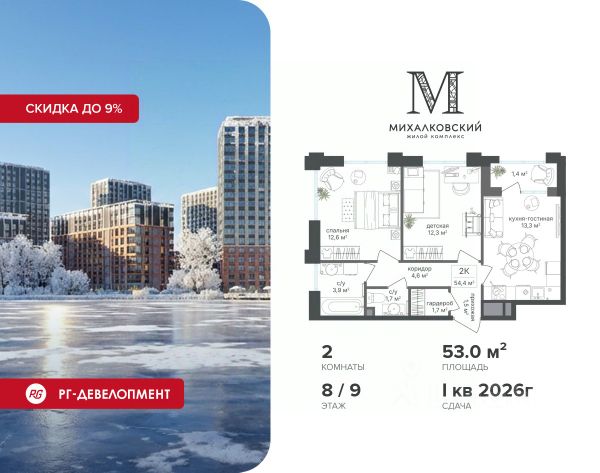 Скидка 9% при покупке квартиры! Продаётся 4-к квартира 85,2 кв.м. в ЖК "Михалковский" на 8-м этаже 20 этажного дома. Ипотека для каждого! Полная стоимость кредита от 13,192% до 17,149%. Ставка от 0,11% в АО "Альфа-Банк", ген. лицензия ЦБ РФ 1326 от 16.01.2015. Ставка фиксируется на первые 12 месяцев, далее полная стоимость кредита от 22,022% до 24,599% ставка 21,59%. Первоначальный взнос — от 20,1% от стоимости квартиры. Срок кредитования — от 4 до 30 лет. Компания "РГ-Девелопмент" предоставляет скидку на квартиры в жилом комплексе. Акция действительна до 15.03.2026 включительно. Для того чтобы воспользоваться предложением, необходимо подписать договор на приобретение недвижимости до 15.03.2026 включительно. Действует программа "Растет семья - растет и квартира". Компания "РГ-Девелопмент" вошла в ТОП-10 девелоперов по объёму введённого жилья в "Старой Москве" по итогам 2025 года. Прямая продажа от застройщика! Квартиры без отделки. Срок сдачи IV кв. 2027г. Особенности проекта: Завораживающие виды Красивое благоустройство Уникальная локация для Москвы (рядом Головинский парк, пруды, усадьба Михалково) Рядом с центром В проекте присутствует: архитектура голландского бюро MLA+, зеленые зоны, транспортная доступность, благоустроенная территория, подземный паркинг, детский сад и выход на Головинский парк с пятью прудами. Название комплекса указывает на одну из его черт - соседство с имением Михалково. Позвольте себе жить в месте, где проводили свой досуг династии Дашковых и Паниных.