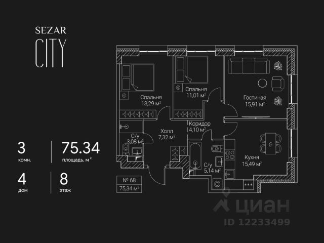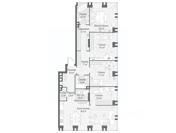 Эргономика и простор в каждой комнате. Общее и личное пространства разделены. Сердцем вашего дома станет кухня-гостиная 31м², полностью укомплектованная надежной немецкой техникой Bosch и дизайнерской мебелью премиум класса. Здесь легко собраться за большим столом или устроить уютный киновечер на диване. Рабочая зона на кухне у окна с приятным видом во двор- утренний кофе и готовка становится маленьким ритуалом. Большая и светлая лоджия 9м², где вы можете организовать зимний сад или лаунж-зону.