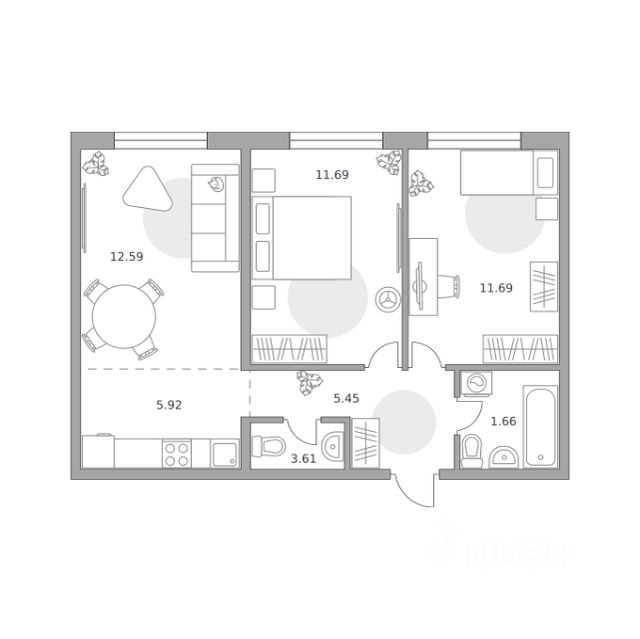 Продаётся 2-комнатная квартира 118, площадью 34,40 м², на 8 этаже в ЖК "Аникеевский" корпус 1.1. Стоимость — от 7257241 руб. Квартира без отделки, планировка односторонняя, окна во двор.
