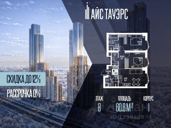 Выгода 12%, беспроцентная рассрочка от застройщика. Продается 1-комнатная квартира на 8 этаже, 35.2 кв.м. площади в жилом комплексе "Айс Тауэрс", который расположен в Западном административном округе Москвы. Архитектура комплекса отличается панорамным остеклением фасадов. Квартиры продаются с опциональной отделкой white box. В комплексе установлены системы видеонаблюдения, климат-контроля (бризеры) и элементы системы "умный дом". Территория и расположение На придомовой закрытой территории обустроены детские площадки, зоны для воркаута и места для отдыха. Комплекс граничит с особо охраняемой природной зоной, что обеспечивает доступ к прогулочным маршрутам. Инфраструктура комплекса • Комьюнити-центр с универсальными залами, коворкингом и библиотекой. • Помещения для детских занятий и мастер-классов. • Предусмотрены кабинеты для приема специалистов (стилистов, массажистов). В комплексе работают круглосуточная консьерж-служба и служба доставки (внутри комплекса). Доступны услуги парковки (valet) и помощи с багажом (беллмены). Для повседневного удобства предусмотрены: • Колясочные и велосипедные хранилища. • Душевые для домашних животных и груминг. • Мобильное приложение для управления сервисами.