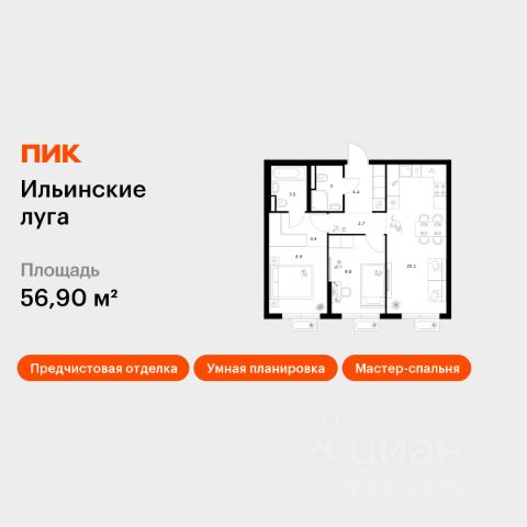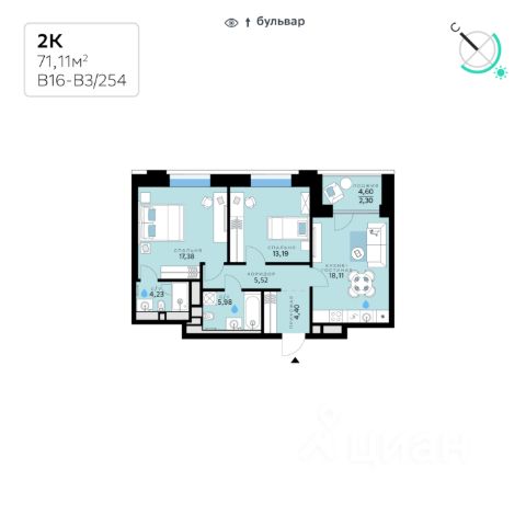 В продаже — двухкомнатная квартира с чистовой отделкой, общей площадью 71,11 кв. м. Квартира расположена на восьмом этаже десятиэтажного корпуса Балансд в квартале В16 нового района СберСити, который строит Сбер. Архитектуру квартала В16 создало итальянское бюро ARCHEA middle east: каждый дом узнаваем, но вместе они складываются в спокойный, цельный ансамбль. В облицовке сочетаются тёплые оттенки кирпича и металла, за счёт игры фактур фасады выглядят живыми и меняются в разное время дня. Строгая геометрия поддерживает ритм города, а мягкая природная палитра помогает чувствовать себя дома, а не в деловом квартале. Дом возводится по технологии монолитного строительства. Все квартиры передаются с чистовой отделкой. Отделка предлагается на выбор в трёх стилях — Новая классика, Скандинавский и Средиземноморский — в нескольких цветовых решениях. В квартирах предустановлена система "умный дом", связывающая квартиру, дом и прилегающую территорию. Жильцы могут регулировать климат и освещение голосом или со смартфона, предусмотрена защита от протечек. Высота потолков — от 2,9 м. Квартал состоит из девяти домов средней этажности — от 7 до 10 этажей. Корпуса формируют большой внутренний двор площадью два гектара. Во дворе предусмотрены зоны для разных сценариев: просторные площадки для детей, пространства для активного досуга и спорта, тихие места для отдыха и спокойного времени, а также удобные рабочие места под открытым небом. Здесь легко найти своё — для жизни, здоровья и занятий тем, что действительно нравится. В доме предусмотрены: уютное лобби с зоной ожидания, лапомойка, санузел, помещение для хранения колясок и велосипедов, подземный паркинг. СберСити — это новый жилой и деловой район на западе Москвы, в одном из самых экологически чистых и престижных мест столицы. Это первая в России и крупнейшая в мире инновационная городская среда, созданная по международным стандартам зелёного проектирования. Здесь внедряются решения в области энергоснабжения, вакуумного мусороудаления, тестирования зелёных технологий, а в дальнейшем — системы искусственного интеллекта для управления домами и городской инфраструктурой. Строительство проекта началось в 2021 году, заселение первых корпусов — с лета 2024-го. Общая площадь территории — 461 га, из них более 2,5 млн кв. м жилья и около 833 тыс. кв. м офисных пространств. Будет построено 7 школ, 13 детских садов и 2 поликлиники. В СберСити будут жить 65 тыс. человек и работать 70 тыс. Развитием территории занимается АО "Рублёво-Архангельское", входящее в группу Сбер. СберСити — место, где хочется жить, работать и растить детей. Переезжайте в СберСити!