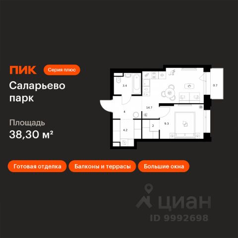 Продаётся 2-комн. квартира площадью 54,1 кв.м на 8 этаже 18 этажного дома (Корпус 74.2, Секция 2) проекта ПИК Саларьево парк. Светлый просторный подъезд на уровне земли, функциональная планировка, большие окна, предчистовая отделка. Жилой район "Саларьево парк" расположен в Новой Москве, в четырёх километрах от МКАД по Киевскому шоссе. Две станции метро: "Саларьево" и "Филатов луг", — находятся в пешей доступности от проекта. Дойти до них можно за 510 минут. В квартале уже создана качественная среда, где есть абсолютно всё для полноценной жизни, работы и отдыха. Благодаря удобному расположению проекта всё важное будет рядом: детские сады, школы, кафе и рестораны, шопинг в торговых центрах, фитнес и даже аэропорт. Все корпуса в квартале гармонично сочетаются, образуя единую городскую среду. Между собой их объединяет невысокая этажность и натуральная цветовая гамма. Здесь приятно гулять и проводить время на улице всей семьёй. В "Саларьево парке" создана уникальная образовательная среда, включающая в себя шесть школ, рассчитанных на 6 250 учеников. Две из них уже открыты, их посещает 2 300 детей. Также на территории "Саларьево парка" находится 12 детских садов, один из которых с бассейном. Сейчас уже открыты 7 садов. В "Саларьево парке" открыта уникальная игровая площадка — PlayHub "Оригами". Здесь есть ручей, горка-труба и рельефные холмы. Взрослые смогут отдохнуть в уютном кафе, пока дети играют. Также на территории проекта есть SportHub — большая спортивная зона, разделённая по интересам и возрастам. Здесь можно заниматься разными видами спорта: футболом, баскетболом, волейболом и стритболом. Зимой центральную часть площадки превращают в каток. Во дворах-парках жилого квартала есть места для отдыха, детские и спортивные площадки. На первых этажах домов расположены магазины, кафе и полезные сервисы. Также вблизи проекта есть несколько масштабных торговых центров. До ТЦ "Саларис" пять минут пешком, до "Рио", Metro Cash & Carry и "Леруа Мерлен" — пять минут на автомобиле. Артикул 1006354 (Застройщик ООО "Специализированный Застройщик "Тирон")