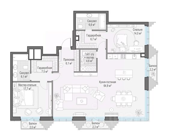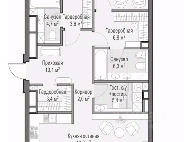 Просторная светлая квартира площадью 99,5 кв. м с окнами на восточную сторону, выходящими на гостиницу "Украина", Кудринскую площадь и тихую улицу Сергея Макеева, которая является односторонней. Панорамные окна шириной 2,38 метра с возможностью открывания настежь улучшают видовые характеристики квартиры. Продуманная планировка позволяет разместить две спальни с отдельными санузлами и гардеробными. Life Time - роскошный современный квартал на Пресне, в наиболее быстро растущем премиальном районе ЦАО. Его насыщенная инфраструктура и выгодное расположение дарят время для жизни. Вы больше не тратите его на дорогу или ожидание, при этом ни в чём себе не отказывая. На территории предусмотрено всё для комфортной жизни: • двор-парк площадью 1,8 гектара с прудом и фонтанами; • Clubhouse - инфраструктурный центр в отдельном здании с исчерпывающими возможностями для спорта, отдыха и досуга только для жителей; • спортивная инфраструктура на улице и в помещении, в том числе бассейн длиной 25 метров, хот-таб, хаммам, сауна, бьюти-зона; • клубная гостиная с террасой; • всё для развития и досуга детей любого возраста, в том числе детский сад и школа. Life Time находится в центре сложившегося премиального района, в окружении многочисленных парков. Удобная транспортная доступность и прямой выезд на Звенигородское шоссе позволяют без проблем добраться до Садового кольца и Москва-Сити. Архитектурный стиль квартала - роскошный минимализм. Дома десятилетиями будут выглядеть современно.