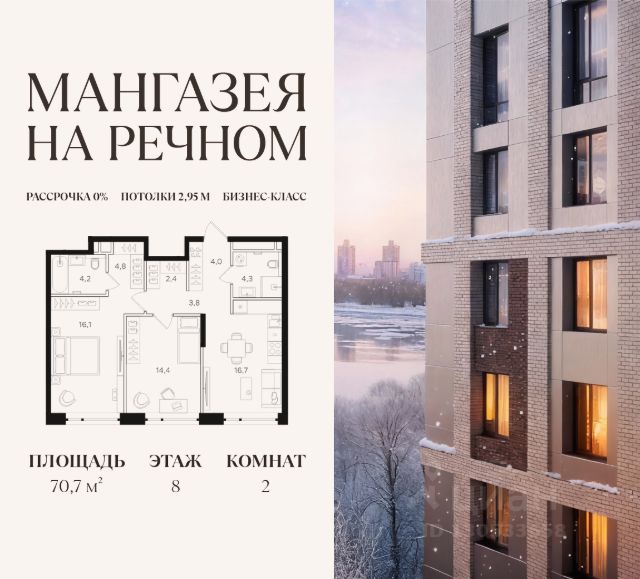 Безупречная новая премиальная отделка и продуманная планировка в квартире 95 м² в комплексе бизнес-класса Династия.