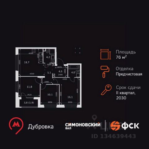 СТАНДАРТНАЯ ИПОТЕКА 10% БЕЗ НАЦЕНКИ! Прямая продажа от застройщика! Жилой Комплекс премиум-класса. Продаётся 4-к квартира номер 80 общей площадью 76.5 кв.м. на 8-м этаже 27 этажного здания. Отделка Whitebox. Особенности квартиры: - Мастер-зона с санузлом и гардеробной. Всё для вашего комфорта и удобства, включая личный санузел и гардероб. - Просторная спальня, в которой можно разместить большую кровать. - Угловая планировка - больше пространства для ваших идей. - Увеличенное количество окон - дополнительное освещение и свежий воздух. - Гостевой санузел - комфорт и удобство для ваших гостей. - Душ помимо ванной - дополнительное удобство для вашей семьи. - Евроформат - просторное и удобное жилье с отличной планировкой. - Можно оборудовать 2 или более рабочих места - пространство для нескольких человек. - Возможность добавить спальное место - дополнительный комфорт для гостей. - Гардеробная - удобство для хранения и организации вещей. - Ниша под шкаф - компактное и удобное место для вещей. - Лоджия - уютное место для отдыха и тишины. Квартира с предчистовой отделкой (White box). Вам не придется заниматься черновыми и трудоёмкими работы, а чистовую отделку и дизайн - сделайте на свой вкус. Информация о комплексе: "Privatehouse класса бизнес+ в историческом районе Москвы с насыщенной городской инфраструктурой. Приватное расположение внутри квартала, закрытый ландшафтный двор с водопадом, инженерия по золотому стандарту ФСК, сбалансированное благоустройство и подземный паркинг делают жилой комплекс "Симоновский Вал" идеальным местом для семьи. Террасы "Симоновского Вала" - уникальный архитектурный элемент, который не только формирует выразительный облик комплекса, но и становится естественным продолжением вашего жилого пространства. Приватная смотровая площадка с панорамными видами на центр Москвы и изгибы Москвы-реки открывает безграничные возможности для премиального образа жизни. Лобби проекта наполнено светом и спокойствием - здесь хочется ненадолго задержаться, перевести дыхание. Мягкое освещение создают авторские светильники: они подчеркивают архитектуру пространства и не утомляют глаз. Акцентный элемент - мозаичное панно с растительным мотивом, выполненное из керамических пластин, которое придает интерьеру изысканность и художественную выразительность." Транспортная доступность: Метро "Дубровка" - 7 мин. пешком Метро "Волгоградский проспект" - 17 мин. пешком Станция МЦК "Дубровка" - 9 мин. пешком Внутренняя инфраструктура: Район, избалованный хорошей инфраструктурой, предъявляет высокие требования к сервисам и магазинам под вашими окнами. И "Симоновскому Валу" есть что ответить. В его общественном дворе расположеныв магазины со свежайшими продуктами и бытовыми товарами, кофейни с безупречным капучино и здоровыми десертами, барбершоп, салон красоты и другие сервисы.