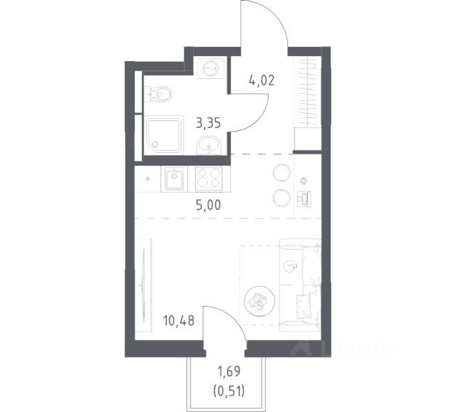 В продаже студия в корпусе 1 ЖК 'Космический Квартал'. Квартира располагается на 9 этаже, общая площадь 26.49 м2.