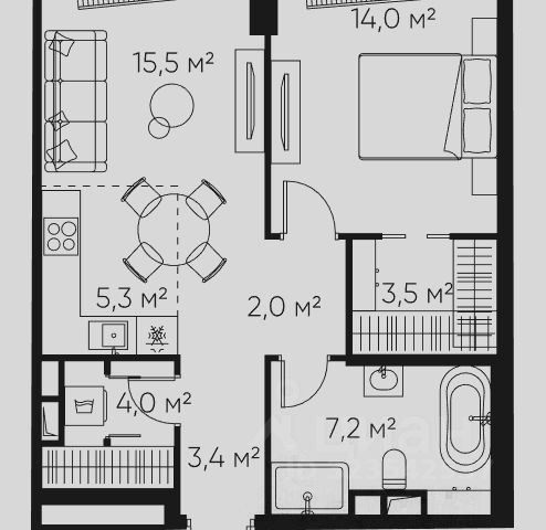 2-комн. квартира с предчистовой отделкой в ЖК "FORST" на 9 этаже. Общая площадь: 59 кв.м., жилая: 24.14 кв.м., площадь просторной кухни-столовой: 20.1 кв.м. В квартире два совмещенных санузла. Высота потолков 2.85 м.