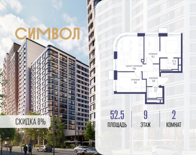Скидка до 8% действует до 31.03.2026 г. при 100% оплате и не субсидированной ипотеке. Продается 2-комнатная квартира от застройщика: общая площадь 61.70 м², жилая 26.70 м², кухня 19.30 м², 9-й этаж, жилой квартал "Гордость", корпус 36 (секция 5). Срок сдачи: 2 квартал 2029 года. Позвоните сейчас и забронируйте квартиру! Квартал бизнес-класса СИМВОЛ - это городское пространство нового поколения в историческом районе Лефортово, на границе ЦАО, в 2 км от Садового кольца. Бионическая архитектура СИМВОЛА превратила Лефортово в суперсовременное и модное пространство. Из окон, с балконов и террас просторных квартир СИМВОЛА открываются отличные виды на город и новый парк "Зеленая река", "протекающий" через все кварталы комплекса на 2 км. В квартале уже есть все, что нужно для комфортной жизни: кафе и рестораны, супермаркеты и магазины, медицинские и физкультурно-оздоровительные центры, салоны красоты и барбершопы, аптеки и оптики, химчистки, пункты доставки и другие сервисы - всего более 90 действующих объектов внутриквартальной инфраструктуры. Для юных жителей СИМВОЛА открыты детский сад и инженерный лицей при МГТУ им. Баумана. Особенности квартала: • Свой парк "Зеленая Река" - 10 га зелени и развлечений на любой вкус! • Уникальная для Москвы архитектура - Проект создан архитектурной мастерской ATRIUM по дизайн-коду британских бюро LDA Design и UHA London. • Богатая инфраструктура с детскими садами и лицеем им. Баумана, кафе и ресторанами, супермаркетами и аптеками, зоной для фитнеса, бассейном и мед. центром. • Квартиры с панорамными окнами, террасами, ванными с окнами и каминами редких форматов. • Закрытые безопасные зелёные дворы-парки без машин!