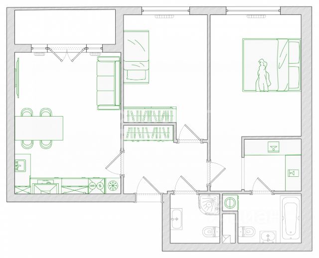 Двухкомнатная квартира с предчистовой отделкой в ЖК "Северный Порт" на 9 этаже. Общая площадь: 70.7 кв.м., жилая: 27 кв.м., площадь просторной кухни-столовой: 23.8 кв.м. Квартира угловая, окна oбecпeчивaют paвнoмepнoe ocвeщeниe в тeчeниe дня. В квартире два совмещенных санузла. Высота потолков 3.15 м. Квартира находится в корпусе 7.3. Дом монолитный, одноподъездный, высотой 58 этажей. На этаже 10 квартир. В подъезде 4 пассажирских и 4 грузовых лифта. Окончание строительства - 1 квартал 2028 года. Оформление сделки по договору долевого участия. В шаговой доступности от жилого комплекса находятся станции метро (расстояние по прямой): "Беломорская" (1.1 км), "Планерная" (1.5 км), "Речной вокзал" (1.6 км), также недалеко от этого корпуса находится станция метро "Ховрино". В проекте "Северный Порт" реализованы авторские решения девелопера LEGENDA, которые представлены уникальными фасадными решениями, коллекцией дизайнерских квартир, а также инновационным оснащением комплектацией TechnoBox - полностью технологически подготовленным пространством для любых современных сценариев жизни. В 1-ой очереди строительства проекта "Северный Порт" авторская комплектация TechnoBox представлена в корпусах 7.1 и 7.3 и включает в себя два направления: Технологически подготовленное пространство: - Smart Home Ready - стационарное и удаленное управление квартирой. - Air Design - всегда свежий воздух, никакого шума и пыли. - Мультизональное кондиционирование. - Мультисервисная сеть - единая сеть коммуникационных систем. Готовность к декорированию: - Шумоизоляция - комплексные меры для защиты от лишнего шума. - Подготовка стен - все стены подготовлены к отделке дизайнерскими материалами. - Выровненный пол - полы выровнены стяжкой из цементно-песчаной смеси, повышающей механическую прочность, и готовы к укладке покрытия. - Электрические сети - коммуникации расположены с учетом рекомендаций по расстановке мебели и техники. "Северный порт" от LEGENDA входит в крупномасштабный проект комплексного развития территории Северного речного порта, реализуемый правительством Москвы, и представляет собой микс жилой, коммерческой, социальной и общественной инфраструктуры. Автором концепции обустройства территории выступило архитектурное бюро Сергея Скуратова. Созданный дизайн-код лёг в основу проекта, разработанного LEGENDA совместно с архитектурным бюро KAMEN Architects. Город ставит новый акцент, создавая мощный центр притяжения в экологичной локации у Северного речного вокзала. Близость к воде, парковым зонам и футуристичный архитектурный образ определяют потенциал развития проекта на несколько десятилетий вперед. Важной частью проекта станет строительство самой протяженной благоустроенной набережной, которая соединится с парком Северного речного вокзала и создаст уникальное прогулочное пространство длиной 3,2 км, вдоль которого будет организован современный торговый променад. В основе концепции благоустройства лежит авторская модель пр