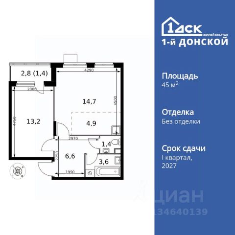 Прямая продажа от застройщика! Жилой Комплекс класса Комфорт Плюс. Продаётся 2-к квартира номер 610 общей площадью 45 кв.м. на 9-м этаже 24 этажного здания. Без отделки. Цена с учётом скидки. Особенности квартиры: - МЦД-5 в пешей доступности - Квартал с собственной набережной - Свои 2 детских сада и школа - Просторная спальня, в которой можно разместить большую кровать. - Линейная планировка - максимальная функциональность и удобство. - Евроформат - просторное и удобное жилье с отличной планировкой. - Кухня-гостиная - идеальное пространство для встреч с близкими. - Линейная кухня - функциональность и практичность в одном решении. - Ниша под шкаф - компактное и удобное место для вещей. - Лоджия - уютное место для отдыха и тишины. Информация о комплексе: Комплекс 1-й Донской расположен в 7 км от МКАД по трассе М-4 Дон. В нем сочетаются все плюсы комфортной городской среды и природного окружения. В проекте достаточно большой процент квартир, выходящих на 2-3 стороны света. Секции-маяки формируют у зданий визуальную L-форму, что придает застройке структуру и ритмику объемов. На ощущение динамики работает и разная этажность зданий. Теплая цветовая палитра фасадов отражает природу Дона. Вечерами дома преображаются благодаря архитектурной подсветке, выгодно выделяясь на городском фоне. Природа оказывает положительное влияние на человека на всех уровнях восприятия: через зрение, запахи, звуки, тактильные ощущения. Неподалеку от ЖК Первый Донской: Ермолинский парк, Видновский лесопарк, Жуковский парк Транспортная доступность: Комплекс удобно расположен в 7 км от МКАД по трассе М-4 Дон (через Видное). Расстояние до Каширского шоссе составляет 12 км. Добраться до метро и центра Москвы позволяет развитая сеть маршрутов общественного наземного транспорта. Действующая ж/д станция Калинина Павелецкого направления в 15-17 минутах ходьбы (МЦД-5 в 2025-2026 гг). Внутренняя инфраструктура: Проект 1-й Донской соседствует с бурно развивающимся районом, основная инфраструктура которого уже сложилась. В строительстве современных жилых комплексов в округе есть свои плюсы: здесь формируется продуманная и комфортная городская среда. Что касается внутренней инфраструктуры, на территории квартала будут расположены собственные муниципальные 2 детских садика и школа, которые помогут совместить приятное с полезным. Территория комплекса пронизана целой сетью живописных пешеходных маршрутов, позволяющих попасть в любой уголок района. Основные пути, как водится, "торговые". Они проходят вдоль магазинов, кафе и других представителей коммерции и отделяются от проезжей части зеленой "фито" - стеной. Среди крупных социальных объектов предусмотрены своя поликлиника и торговый центр с примыкающей площадью для общественных мероприятий. Уют начинается с продуманного подъезда. Сквозные подъезды наполнены светом благодаря сплошному остеклению. Вход в них есть и с улицы, и со двора.