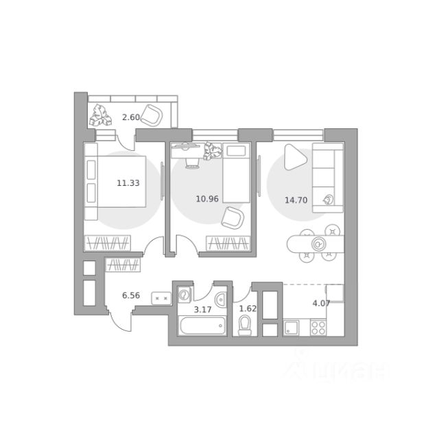 Продаётся 2-комнатная квартира 568, площадью 41,01 м², на 9 этаже в ЖК "Ильинойс" корпус 3. Стоимость — от 10063432 руб. Квартира без отделки, планировка односторонняя, окна во двор.
