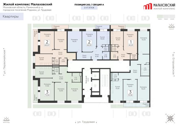 Продается 1-к квартира площадью 39.13 кв. м с черновой отделкой. Квартира расположена на 9 этаже 19 этажного дома, в 201 корпусе. "Малаховский" - жилой комплекс в Раменском районе Подмосковья, идеально подходящий для семей с детьми. Проект от федерального застройщика ГК "Развитие" находится в тихом и зеленом микрорайоне Родники и отличается удобной транспортной связью с Москвой и Люберцами. Три дома высотой 17 этажей с видами на озеро и парк, просторные квартиры, приватный двор-патио с ландшафтным дизайном и доступная инфраструктура обеспечат жителям новых квартир все преимущества городской жизни в живописном природном окружении. Транспортная доступность - Удобный выезд на Егорьевское шоссе и строящуюся магистраль МЕТК (Москва - Егорьевск - Тума - Касимов); - 18 км от МКАД; - 5 мин. до МЦД-3 "Удельная"; - 29 мин. до метро "Лермонтовский проспект". Архитектура Дома отличаются высокой тепло- и шумоизоляцией, долговечностью, высоким уровнем энергоэффективности и современным внешним видом. Фасады выполнены в спокойной цветовой гамме. Из окон с широкоформатным остеклением открываются виды на березовую рощу, озеро и зеленые дворы. Логичным продолжением архитектуры становятся просторные входные группы, где продумано всё: витражное остекление, высокие потолки, дизайнерская отделка, два выхода на обе стороны дома, а также современные лифты (грузовой и пассажирский) и колясочные. Планировочные решения Планировки комплекса "Малаховский" функциональны и эргономичны, что упрощает зонирование и расстановку мебели. Квартиры оснащены гардеробными, лоджиями с панорамным остеклением, двумя санузлами (даже в однокомнатных) и просторными прихожими. Высота потолков - 2,7 м. Квартиры сдаются с отделкой white box, которая позволит воплотить индивидуальный дизайн-проект по своему вкусу. Доступны варианты отделки "под ключ" с применением лучших дизайнерских материалов. Благоустройство В жилом комплексе тщательно продумана концепция благоустройства. Через всю территорию тянутся живописные прогулочные бульвары с ландшафтным дизайном и всесезонным озеленением. Рядом обустроено 3 современных детских площадки с мягким покрытием, а для взрослых предусмотрены уютные лаунж-зоны для общения, тихого отдыха и спорта на свежем воздухе. Двор каждого дома свободен от машин, а для дополнительного уюта и безопасности здесь установлено современное освещение. Естественным продолжением дворового ландшафта становится березовая роща с природными тропинками и небольшим водоемом, прилегающая к жилому комплексу. Инфраструктура и окружение - Наземный паркинг на 55 машино-мест и гостевая парковка; - Все повседневные сервисы (кафе, магазины, салоны красоты) прямо в вашем доме; - Фитнес-клуб, бассейн, спортивные площадки и велодорожки в многочисленных парках микрорайона Родники; - 2 школы, гимназия и детский сад в шаговой доступности; - ТЦ "Родники" с рестораном и супермаркетом; - Петропавловский парк с благоустроенным детским городком и волейбольной площадко