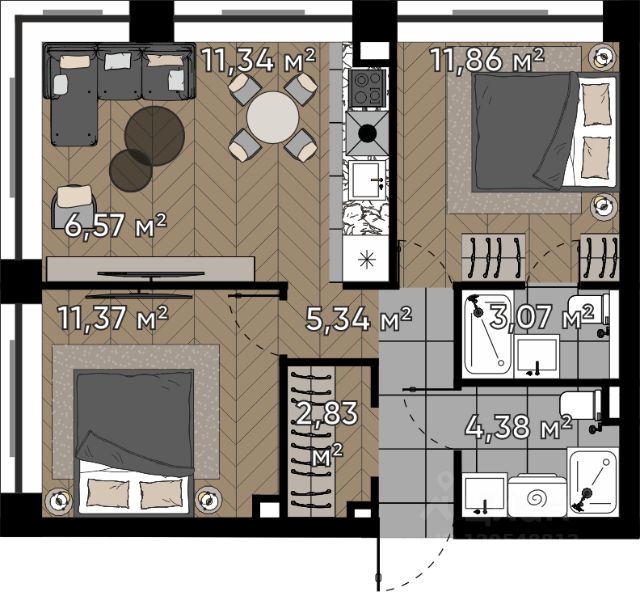 Продаётся 2-комнатная квартира 69.50 м² в жилом комплексе Ракурс. Квартиру отличают панорамное остекление, потолки 2,9 м, улучшенная шумо и воздухоизоляция. Дом сдаётся в 1 квартале 2028 года, продажи проходят через эскроусчета. Подземный паркинг, коворкинг, закрытая благоустроенная территория с фонтаном и артобъектами. Гибкие условия покупки. Rakurs — место, в котором жизнь приглашает к исследованию. Концепция проекта knowledge-centric среда, которая выражается здесь в образе жизни: • атмосфере интеллектуальной среды, • доступности образования, • фокусе на возможности для развития. RAKURS разместился в районе науки и окружен исследовательскими институтами и образовательными учреждениями, при этом на территории построена своя школа с уникальной концепцией. Расположенный на пересечении улиц Маршала Бирюзова и Берзарина, недалеко от станций метро "Октябрьское поле" и "Зорге", дом угождает транспортной доступностью автомобилистам и пешеходам. Инфраструктура же района создана с заботой о людях: здесь много парков, кафе и других уютных мест для отдыха. В состав комплекса входят три башни высотой 18, 26 и 44 этажа, каждая из которых имеет свой запоминающийся силуэт. Между собой башни связаны среднеэтажными строениями с индивидуальными фасадами. Композиция и пластика корпусов, а также панорамное остекление башен обеспечивают квартиры максимальным количеством дневного света и выигрышными видами на центр города и Москву-Сити. Упор на функциональность не лишает проект его уникального образа — все башни имеют неординарную форму с харизматичными уступами и консолями. Rakurs предлагает широкий выбор уникальных вариантов жилья — от студий до эксклюзивных квартир с приватными террасами. Проект спроектирован с фокусом на биофильность и функциональность. Во дворах Rakurs можно насладиться завтраком на террасе кафе, игрой с детьми или спортом на свежем воздухе. В Rakurse cвой комьюнити-центр - многофункциональное пространство для работы, отдыха, общения и развития. Одна из важнейших частей центра — частная библиотека с лаундж-зоной. Книжный фонд отбирается для нее кураторской командой, а дизайн пространства сделан так, чтобы жители могли почувствовать умиротворяющую атмосферу библиотечного зала. Идея knowledge-centric среды поддерживается здесь и книжным магазином с лекторием, а также зонами для самостоятельной учебы и занятий с преподавателями.