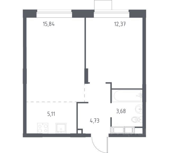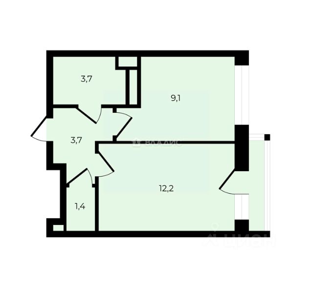 Общая площадь квартиры 33.1 метра. Одна изолированная комната (17.3метра) из комнаты выход на балкон, 6.8 метров куxня, раздельный санузел. Окна выходят во двор. Дом оборудован пассажирским лифтом. Хорошие соседи.