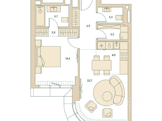Трёхкомнатная wellness-резиденция площадью 109.3 кв. м. на 9 этаже с видом на двор и центр в доме премиум-класса Springs. В квартире выполнена чистовая дизайнерская отделка. Резиденция наполнена светом и воздухом, благодаря панорамному остеклению и высоким потолкам. На первом этаже дома расположены: - фитнес-центр с бассейном; - SPA с хаммамом; - бьюти-зона с массажным кабинетом. - ресторан. Все сервисы доступны исключительно для резидентов. Всего в 2 минутах ходьбы от дома находится заповедный парк Фили прекрасное место для спокойного и активного отдыха. Зеленый массив, набережная, велотропы и открытые зоны для йоги, а также шахматный клуб, летний кинотеатр, множество беседок и кофеен. До делового комплекса Москва-Сити всего 16 минут, а центр — в 14 минутах езды по Кутузовскому проспекту. Удобный выезд к Рублёвскому шоссе — отличная возможность на выходных сбежать с детьми за город, потратив на дорогу меньше получаса. Концепция благоустройства Springs, разработанная студией Wowhaus, воплощает идею взаимного проникновения парка и озеленения внутренней территории: естественная растительность, дополненная акцентами из цветников, плавно вступает во двор. В сочетании с бионической архитектурой дом является органичным продолжением природного ландшафта парка.