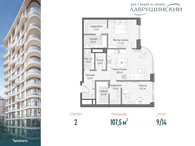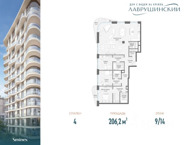 "Лаврушинский" - бескомпромиссный дом с лучшими видами на Кремль. Благодаря расположению всего в одном километре от Кремля, своей высоте и малоэтажной окружающей застройке, из квартир открываются поразительные прямые виды на главные достопримечательности центра Москвы, включая храм Христа Спасителя и собор Василия Блаженного. Расположение в глубине квартала, посередине парка, дает удивительное для центра ощущение тишины и простора. На закрытой территории находится самый большой на элитном рынке собственный ландшафтный парк площадью 1,4 га с фонтаном, ручьём, зонами для воркаута и тихого отдыха. KIDS LAB: развивающая детская площадка на улице и игровая комната в помещении. FIT LAB: фитнес-клуб с 25-метровым бассейном, beauty room, доступные только для жителей. В проекте уникальный выбор квартир с просторными балконами, пентхаусов с террасами, басcейнами и каминами, максимальными видовыми характеристиками, а также роскошных вилл. Всего - 153 квартиры и 101 продуманное планировочное решение. Высота потолков составляет от 3,5 до 8,25 м. В доме предусмотрен 2х-уровневый паркинг на 279 машино-места. В доме предусмотрен полный комплекс систем комфорта, включающий приточно-вытяжную вентиляцию с тонкой фильтрацией с принципом забора воздуха с высоты 50 метров для повышения продолжительности жизни, отдельный сервисный лифт для обслуживающего персонала и другие современные системы.