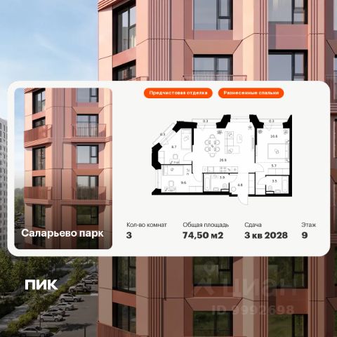 Продаётся 2-комн. квартира площадью 59 кв.м на 9 этаже 15 этажного дома (Корпус 57.2, Секция 2) проекта ПИК Саларьево парк. Светлый просторный подъезд на уровне земли, функциональная планировка, большие окна, предчистовая отделка. Жилой район "Саларьево парк" расположен в Новой Москве, в четырёх километрах от МКАД по Киевскому шоссе. Две станции метро: "Саларьево" и "Филатов луг", — находятся в пешей доступности от проекта. Дойти до них можно за 510 минут. В квартале уже создана качественная среда, где есть абсолютно всё для полноценной жизни, работы и отдыха. Благодаря удобному расположению проекта всё важное будет рядом: детские сады, школы, кафе и рестораны, шопинг в торговых центрах, фитнес и даже аэропорт. Все корпуса в квартале гармонично сочетаются, образуя единую городскую среду. Между собой их объединяет невысокая этажность и натуральная цветовая гамма. Здесь приятно гулять и проводить время на улице всей семьёй. В "Саларьево парке" создана уникальная образовательная среда, включающая в себя шесть школ, рассчитанных на 6 250 учеников. Две из них уже открыты, их посещает 2 300 детей. Также на территории "Саларьево парка" находится 12 детских садов, один из которых с бассейном. Сейчас уже открыты 7 садов. В "Саларьево парке" открыта уникальная игровая площадка — PlayHub "Оригами". Здесь есть ручей, горка-труба и рельефные холмы. Взрослые смогут отдохнуть в уютном кафе, пока дети играют. Также на территории проекта есть SportHub — большая спортивная зона, разделённая по интересам и возрастам. Здесь можно заниматься разными видами спорта: футболом, баскетболом, волейболом и стритболом. Зимой центральную часть площадки превращают в каток. Во дворах-парках жилого квартала есть места для отдыха, детские и спортивные площадки. На первых этажах домов расположены магазины, кафе и полезные сервисы. Также вблизи проекта есть несколько масштабных торговых центров. До ТЦ "Саларис" пять минут пешком, до "Рио", Metro Cash & Carry и "Леруа Мерлен" — пять минут на автомобиле. Артикул 1019175 (Застройщик ООО "Специализированный Застройщик "Тирон")