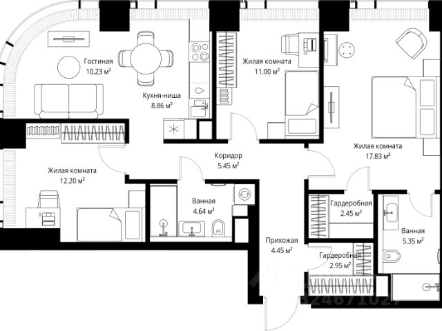 Старт продаж новой очереди! Продаётся 2-комнатная квартира общей площадью 66.44 м² без отделки в ЖК VEER на 9-м этаже 70 этажного дома. VEER.2 — вторая очередь футуристичного квартала бизнес-класса VEER. Это новая экосистема в престижном Западном округе Москвы, поражающая масштабностью внутренней инфраструктуры. ЖК находится всего в 5 минутах от Кутузовского проспекта и в 15 минутах от Сколково. Ансамбль из четырех стеклянных башен с доминантой в 237 метров разработан по принципу современного урбанизма и выражен в лаконичных объемах — параллелепипедах со сглаженными углами, которые придают зданиям утонченный вид. Расположение и транспортная доступность: • Образовательный комплекс в составе топовой школы, состоящий из двух зданий: основное на 1500 школьных и 450 дошкольных мест, отдельное здание детского сада на 300 мест. • Парк "Долина реки Сетунь" площадью более 700 гектаров • Рядом МГУ, МГИМО, РАНХиГС и Академия ФСБ • 15 минут по Кутузовскому проспекту до ужина в центре с видом на Москву-реку • 18 минут пешком до м. "Давыдково" • Открытие новых станций метро в шаговой доступности в будущем Инфраструктура: Двор в VEER.2 — это ассиметричные холмы, каменные "лабиринты", зеленые ковры и хвойные островки с единой живой экосистемой. Здесь есть все: • Павильон умиротворения Место отдыха под навесом в спокойной части двора, окруженное деревьями. • Активная тропа Тактильная дорога из камней разного диаметра для расслабляющих прогулок. • Бизнес-гарден Оборудованное пространство для работы на свежем воздухе со столом и встроенными розетками. • Детская площадка Двухуровневая площадка "Ботаника" с песочницей, переговорной трубой и горкой "Дружба". Компания MR предлагает своим клиентам специальные условия приобретения квартир в рамках программ ипотечного кредитования от банков-партнеров.