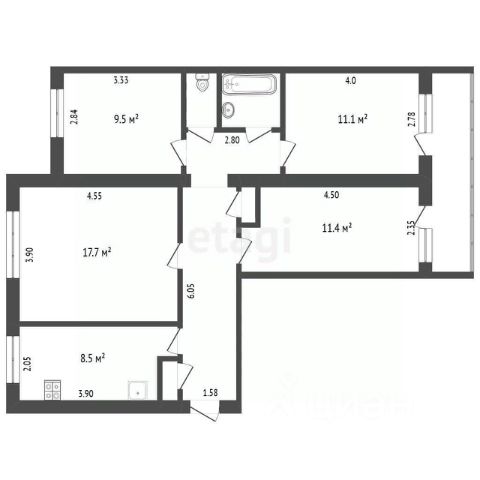 Отличная планировка: Изолированные комнаты, окна во двор.