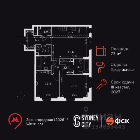 Прямая продажа от застройщика! Жилой Комплекс премиум-класса. Продаётся 3-к квартира номер 538 общей площадью 73.7 кв.м. на 9-м этаже 42 этажного здания. Отделка Whitebox. Цена с учётом скидки. Особенности квартиры: - Мастер-зона с санузлом и гардеробной. Всё для вашего комфорта и удобства, включая личный санузел и гардероб. - Угловая планировка - больше пространства для ваших идей. - Увеличенное количество окон - дополнительное освещение и свежий воздух. - Увеличенная высота окна - больше воздуха и света. - Гостевой санузел - комфорт и удобство для ваших гостей. - Постирочная - организуйте пространство для стирки и сушки вещей. - Евроформат - просторное и удобное жилье с отличной планировкой. - Гибкая планировка - создайте пространство по своему вкусу. - Можно оборудовать рабочее место - комфорт для работы и учёбы. - Просторная мягкая зона - комфорт и уют для отдыха всей семьи. - Линейная кухня - функциональность и практичность в одном решении. - Возможность добавить спальное место - дополнительный комфорт для гостей. - Проходная кухня-гостиная - идеальное пространство для общения и готовки. - Гардеробная - удобство для хранения и организации вещей. - Ниша под шкаф - компактное и удобное место для вещей. Квартира с предчистовой отделкой (White box). Вам не придется заниматься черновыми и трудоёмкими работы, а чистовую отделку и дизайн - сделайте на свой вкус. Информация о комплексе: Премиум-класс прямо на берегу Москвы-реки, с прямым выходом на набережную и потрясающими панорамными видами! На Шелепихинской набережной, расположен причал для речных трамваев. Вам станет доступна единственная столичная транспортная артерия, на которой никогда нет пробок: 20 минут до Москва-Сити, да еще и с вдохновляющими видами по пути. Входные группы домов - это индивидуальные дизайн-проекты, посвященные трем главным местам в жизни Лермонтова: Тарханам, Петербургу и Кавказу, которые объединяют сочетание эстетики и комфорта. Бурная жизнь соседей больше не сможет нарушить ваш покой, а к вам никто не постучит, если вы захотите прибавить громкость в любимом музыкальном треке или Ваши дети захотят устроить ночную пробежку! Живите только по своим правилам. В каждой квартире подключен базовый пакет Умная квартира забудьте о беспокойстве о протечке; настройте свои сценарии управления техникой и электричеством; общайтесь с Умной квартирой голосом; Можете легко расширить базовый пакет и подключить дополнительные опции и устройства, чтобы из любой точки мира управляй работой бытовых приборов и систем, например: включайте разогрев ужина; регулируйте яркость яркость света; регулируйте громкость музыки; настраивайте работу теплых полов; Транспортная доступность: В 50 м до новой станции метро "Звенигородская". Вторая улица от ЦАО и соседство с Москва-Сити. Все виды общественного транспорта, в том числе речные трамвайчики, в пешей доступности Внутренняя инфраструктура: Основная артерия жизни квартала - центральный бульвар. Вы с радость