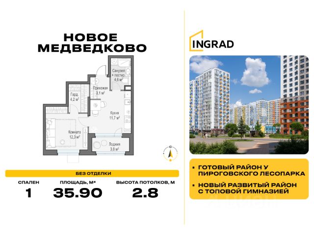 Рассрочка 0% Продаётся 1-комнатная квартира площадью 42.9 м² на 9 этаже в Жилом Комплексе "Союз". Квартал здоровой жизни премиум-класса с рекордным количеством олимпийских видов спорта: - Ледовая арена для хоккея и фигурного катания, - Футбольные поля для тренировок, - Спортивный зал для фехтования, - Бассейн на 6 дорожек, - Центр единоборств, - 4 крытых площадки для настольного тенниса, - 7 теннисных кортов (крытых и открытых), - 4 крытых площадки для сквоша, - Легкоатлетический стадион, - Площадки для баскетбола и волейбола. Уникальные форматы квартир с мастер-спальнями, приватными террасами, балконами, а также пентхаусы с открыточными видами на город. Все квартиры продаются с отделкой Shell&Core и панорамным остеклением. Расположение Пешком: - 2 мин. до парка "Сад Будущего"; - 6 мин. до ст. м. "Ботанический сад"; - 6 мин. до ст. МЦК "Ботанический сад"; - 6 мин. до парка "Леоновская роща"; На автомобиле: - 2 мин. до СВХ (МСД); - 5 мин. до Проспекта Мира; - 10 мин. до ТТК; - 15 мин. до Садового кольца; - 25 мин. до аэропорта "Шереметьево". Благоустройство - собственная спортивная инфраструктура 7 Га; - зона для пикников; - игровые и спортивные площадки для детей всех возрастов; - розарий, а также сосновые, каштановые и дубовые аллеи; - площадки под открытым небом для занятий спортом и йоги; - игровые комнаты для детей; - лаунж-зона для резидентов; - просторная переговорная для деловых встреч; - премиальный ресторан "Шабада" Сосо Павлиашвили с водными арт-объектами на прогулочной аллее, садом ароматных трав и сценой под открытым небом; - кафе, химчистки, аптеки и супермаркеты рядом с домом. Окружение - 8 парков: Сад Будущего, Леоновская роща, Хуамин, Главный ботанический сад РАН, Шереметьевская дубрава, Останкино, парк спорта "Яуза", пойма реки Яуза и музей-усадьба "Останкино"; - 3 ВУЗа: ВГИК, РГСУ, МГПУ; - 12 школ, в том числе: школа 1499 им. И.А. Докукина (топ 100), Brookes Moscow, IThub школа; - 18 детских садов, в том числе билингвальный ALERTUM KIDS; - один из крупнейших океанариумов Европы "Москвариум"; - один из крупнейших в Европе торгово-развлекательных центров "Европолис".