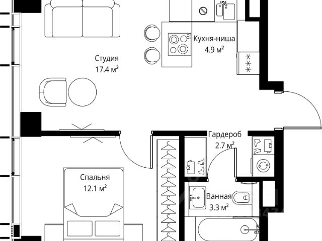 Дом сдан. Ключи в день покупки! В продаже 1-комнатная квартира площадью 38 м² с предчистовой отделкой на 9 этаже 54 этажного дома в корпусе Графит. ЖК Симфония 34 - концептуально новый жилой комплекс премиум-класса с подземной парковкой, состоит из четырех башен высотой 36 - 54 этажа. Квартиры сдаются с базовой (предчистовой) отделкой MR BASE или дизайнерской чистовой отделкой MR READY. Высота потолков 3 - 6 метров, окна высотой до 2,6 м. Более 100 кладовых в подземной части ЖК и более 500 на этажах. Безопасность - Система контроля входа на территорию комплекса, биометрия - Система автоматического водяного пожаротушения и противопожарного водопровода, система пожарной вентиляции - Доступ на парковку при помощи системы распознавания автомобильных номеров, карточка для контроля доступа резидентов - Система видеонаблюдения - Круглосуточная связь через приложение, телефон, голосовые сообщения с охраной, консьержем, call-центр. Расположение Пешком - 6 минут до метро "Дмитровская" - 15 минут до Тимирязевского парка На машине - 5 минут до Савеловского вокзала и Аэроэкспресса в Шереметьево - 10 минут до Москва-Сити и Садового кольца Благоустройство - 70% территории отведены под зеленые насаждения и ландшафтный дизайн - Приватный Японский сад - Детские площадки с зонированием по возрасту - Clubhouse для резидентов - Wellness & SPA - Зона для пикника, зона с гамаками - Центральное лобби, ресторан, коммерческие помещения - Дополнительный вход/выход на территорию комплекса Окружение - В 10 минутах от Symphony 34 находится дизайн-завод Flacon, где регулярно проходят культурно-образовательные и развлекательные мероприятия - Тимирязевский парк расположен в 850 м. Площадь парка 232 га - Рядом расположен парк "Дубки", площадью 16,5 га. - В 15 минутах расположен Хлебозавод 9. Здесь находятся шоурумы брендов, кафе разных кухонь мира, образовательные проекты и площадки для мероприяти