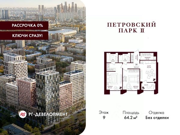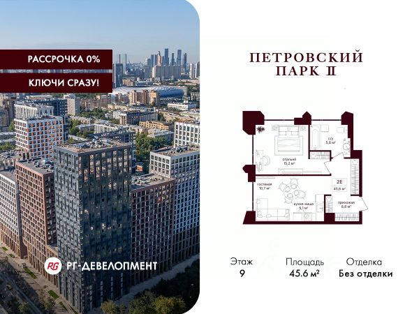 Рассрочка 0%. Первый платёж 30%, второй - не позднее 31.12.2026 г. Продаётся 1-комнатная квартира 45.6 кв.м. в ЖК "Петровский парк II" на 9-м этаже 19 этажного дома. ЖК "Петровский парк II" — жилой комплекс в Савёловском районе, где город ощущается иначе. Здесь история и масштаб Москвы не давят, а задают фон для спокойной, уверенной жизни рядом с центром. Это место, где статус читается не в громких формулировках, а в окружении, архитектуре и ощущении пространства. Коротко о важном: • Район с глубоким историческим контекстом и парковым окружением; • 5 минут пешком до метро "Динамо", рядом с деловой и культурной жизнью города; • Редкое сочетание: энергия мегаполиса и тишина зелёных аллей; • Архитектура от бюро Синтаксис с пластикой форм и индивидуальным характером фасадов; • Панорамные виды на город и зелёные массивы Петровского и Тимирязевского парков; • Закрытый двор без машин, вдохновлённый эстетикой дворцовых садов; • Просторные входные группы с высокими потолками и выверенной, респектабельной эстетикой; • Частный детский сад во дворе; • Подземная парковка и кладовые; • РГ-Девелопмент - ТОП-20 крупнейших застройщиков Москвы. Расположение комплекса формирует особое ощущение свободы выбора. Утром - прогулка по тенистым аллеям Петровского парка, днём - работа и встречи в деловых кластерах поблизости, вечером - культурные события, рестораны и городские пространства в нескольких минутах пути. Здесь расстояния измеряются не километрами, а шагами от дома. Архитектура "Петровского парка II" задумана как современный архитектурный акцент района и одновременно как уважительный диалог с исторической средой. Асимметричные объёмы, волнообразные элементы и игра света и тени создают выразительный, но сдержанный силуэт. Архитектура наполнена воздухом и визуальным ритмом, оставаясь спокойной и уверенной. Общественные пространства продолжают эту логику. Два парадных вестибюля с высокими потолками и благородной цветовой палитрой воспринимаются как пространства, где хочется замедлиться: встретить гостей, перевести дыхание после дня или просто почувствовать уровень среды, в которой вы живёте. Внутренний двор комплекса - это отдельный мир, закрытый от машин и городского шума. Продуманное благоустройство территорий отсылает к регулярным дворцовым садам: геометрия аллей, зелёные "кабинеты", цветники и камерные зоны отдыха создают разные сценарии для повседневной жизни. Здесь органично соседствуют детские игровые пространства, спортивные зоны и тихие места для отдыха. На территории комплекса расположены магазины, кафе и рестораны, а также частный детский сад, встроенный в общую структуру двора. Подземная парковка и кладовые поддерживают ощущение порядка и цельности пространства.