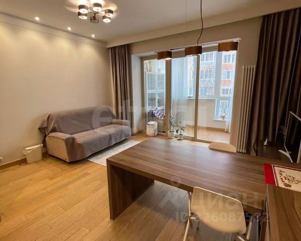 В гостиной стенка-горка для ТВ зоны, диван, в спальне встроенные стеллажи, в спальне на стене панно из натурального камня, ремонт в стиле "Современная классика", в светлых тонах, стены под покраску выполнены дорогой качественной краской. Балкон из спальни, застеклен. Есть дизайн-проект балкона для переделки его в кабинет. В гардеробной 2 шкафа туалетный столик, пол пробковый. Постирочная со стиральной и сушильной машиной, втяжкой, полками для хоз.хранения. Ванна - плитка керамогранит, теплый пол везде в зонах плитки, в коридоре на кухне, с/у, качественная электрика, проходные переключатели, в с/у бойлер.