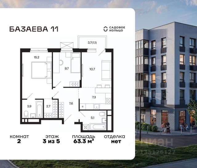Продается квартира в ЖК Шаховская с 1 спальней на 3 этаже 5 этажного дома. Общая площадь: 37.7 кв.м. Высота потолков 2.72 м. Срок сдачи 2 квартал 2027 г. Эскроу-счет. Застройщик ГК "Садовое кольцо". Жилой комплекс в экологически чистом районе Московской области городском округе Шаховская. Камерное пятиэтажное здание находится в пешей доступности от всей необходимой инфраструктуры.