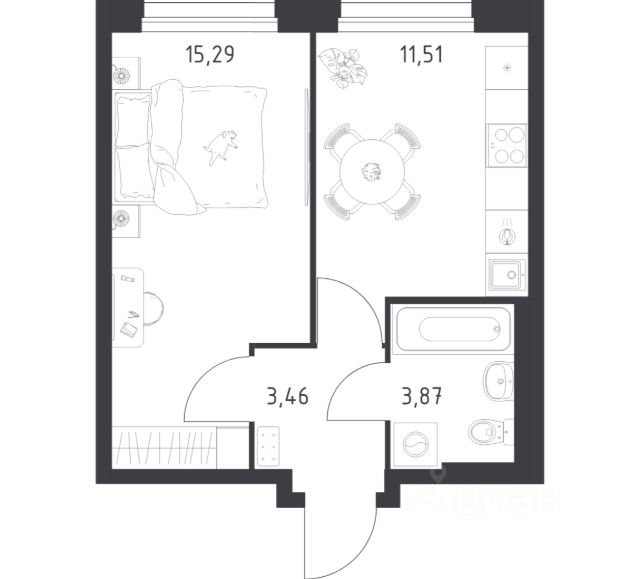 В продаже студия в корпусе 31 ЖК 'Новое Внуково'. Квартира располагается на 3 этаже, общая площадь 23.44 м2.