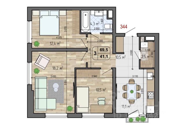 2 закрытые утепленные лоджии (кабинет, рабочая зона)