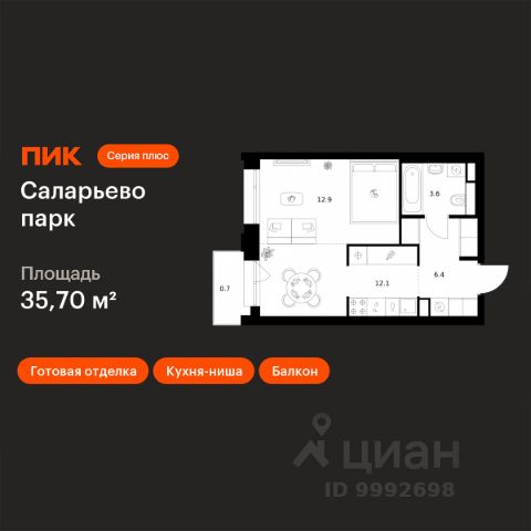 Продаётся 1-комн. квартира площадью 31,1 кв.м на 3 этаже 24 этажного дома (Корпус 82.4, Секция 4) проекта ПИК Саларьево парк. Светлый просторный подъезд на уровне земли, функциональная планировка, большие окна, предчистовая отделка. Жилой район "Саларьево парк" расположен в Новой Москве, в четырёх километрах от МКАД по Киевскому шоссе. Две станции метро: "Саларьево" и "Филатов луг", — находятся в пешей доступности от проекта. Дойти до них можно за 510 минут. В квартале уже создана качественная среда, где есть абсолютно всё для полноценной жизни, работы и отдыха. Благодаря удобному расположению проекта всё важное будет рядом: детские сады, школы, кафе и рестораны, шопинг в торговых центрах, фитнес и даже аэропорт. Все корпуса в квартале гармонично сочетаются, образуя единую городскую среду. Между собой их объединяет невысокая этажность и натуральная цветовая гамма. Здесь приятно гулять и проводить время на улице всей семьёй. В "Саларьево парке" создана уникальная образовательная среда, включающая в себя шесть школ, рассчитанных на 6 250 учеников. Две из них уже открыты, их посещает 2 300 детей. Также на территории "Саларьево парка" находится 12 детских садов, один из которых с бассейном. Сейчас уже открыты 7 садов. В "Саларьево парке" открыта уникальная игровая площадка — ПлейХаб "Оригами". Здесь есть ручей, горка-труба и рельефные холмы. Взрослые смогут отдохнуть в уютном кафе, пока дети играют. Также на территории проекта есть СпортХаб — большая спортивная зона, разделённая по интересам и возрастам. Здесь можно заниматься разными видами спорта: футболом, баскетболом, волейболом и стритболом. Зимой центральную часть площадки превращают в каток. Во дворах-парках жилого квартала есть места для отдыха, детские и спортивные площадки. На первых этажах домов расположены магазины, кафе и полезные сервисы. Также вблизи проекта есть несколько масштабных торговых центров. До ТЦ "Саларис" пять минут пешком. Артикул 1032523 (Застройщик ООО "Специализированный Застройщик "Тирон")