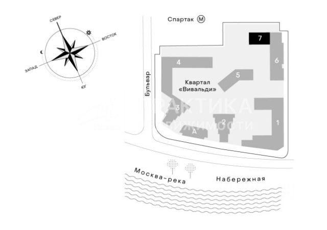 Арт. 127475676 Продаётся евро-двухкомнатная квартира в премиальном ЖК Клубный город на реке Primavera, расположенном на Покровской набережной, д.16, корп 4, на 5 этаже