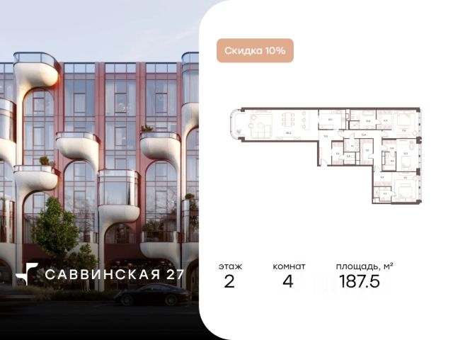 В историческом районе Хамовники продаются 2-к апартаменты площадью 81.50 кв.м, расположенные на 3 этаже делюкс-резиденции Саввинская 27. Преимущества: - 51 апартамент и 10 пентхаусов площадью 83-346 м2 с возможностью перепланировки и объединения; - все апартаменты с видом на Москву-реку; - бассейн 25 метров, тренажёрный зал, зал для занятий йогой и пилатесом; - бизнес-лаундж с отдельными переговорными; - детская комната с выходом во внутренний двор; - зимний сад; - библиотека с настоящим дровяным камином; - салон красоты и спа премиум-класса Mahash Spa; - подземный паркинг на 91 машино-место; - ресторан с летней террасой; - продуманное благоустройство на закрытой территории с охраной и видеонаблюдением, с детской площадкой и местом для тихого отдыха. Расположение и инфраструктура: Дом построен именно в Хамовниках неслучайно, ведь это стиль жизни, к которому вы привыкли: лучшие школы, спортивные секции, места для отдыха, прогулок и комфортная логистика до исторического центра или Москва-Сити. - 2 минуты до Садового кольца и 6 минут до ТТК на машине; - 11 минут пешком до "Лужники"; - 20 минут пешком до станции метро "Спортивная"; - в окружении более 15 детских садов, в том числе 9 частных; - в пешей доступности расположены 11 школ, 4 из которых входят в топ-20 школ Москвы по версии Forbes; - в окружении 5 парков, в том числе парк "Новодевичьи пруды", усадьба Трубецких, парк Горького. Отличная транспортная доступность: Еще одно преимущество резиденции - удобная транспортная доступность. Несмотря на близость к центру, путь на автомобиле до ТТК займет 2 минуты, до Садового кольца 5 минут. В пешей доступности находятся три станции метро: Спортивная, Фрунзенская и МЦК Лужники.