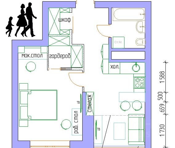 - кухня - 7,3 кв. м,