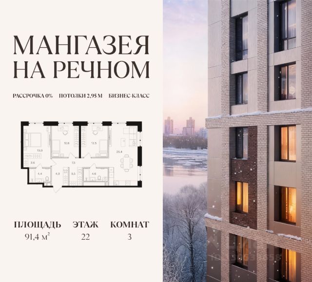 В продаже 2-к квартира площадью 56.5 м2. Функциональная планировка, кухня-гостиная, просторные санузел и гардеробная. Квартира расположена на 20-м этаже 24-этажного дома. Стоимость указана с учетом скидки 10%, экономия составит 3 817 140 рублей! Стоимость квартиры без скидки 38 171 400 рублей. Условия покупки со скидкой 10%: - 100% оплата - Базовая ипотека Условия покупки без скидки: - Семейная ипотека от 3,5% на весь срок - Ипотека 0,11% на первый год - Рассрочка без процентов - Trade-in с проживанием на время строительства дома "Мангазея на Речном" расположена рядом с набережной, парками и территорией Северного речного вокзала. Первая очередь проекта два дома 12 и 24 этажа с приватным двором, ландшафтным благоустройством и инфраструктурой только для резидентов: кинозал, коворкинг, переговорные, зоны отдыха и комнаты для занятия фитнесом. Инфраструктура: - Школа на 1000 мест и детский сад - Дом Wellness со СПА-центром, фитнесом и массажными кабинетами и два бассейна, один из них под открытым небом - Два бассейна, один из них под открытым небом - Прогулочная набережная протяженностью 3,2 км с террасами - Зона воркаута и детские площадки - Ретейл, кафе, рестораны и бутики на первых этажах - Причалы для остановки яхт и небольших катеров Транспортная доступность: - 10 минут пешком до м. Речной вокзал - 15 минут пешком до м. Беломорская - 15 минут на машине до Белорусского вокзала - 17 минут на машине до Садового Кольца В первых корпусах "Мангазеи на Речном" представлены квартиры бизнес-класса с мастер-спальнями, террасами и видами на парк. Эксклюзивные форматы лоты с увеличенной высотой потолков и собственными выходом на благоустроенную территорию. Продается квартира в ипотеку рядом с метро Речной вокзал.