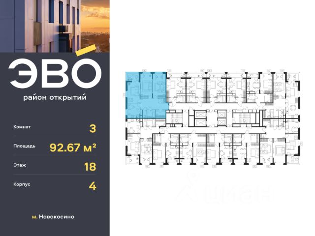 Продается трекомнатная квартира 92.67 кв.м. в жилом комплексе ЭВО на 19 этаже по адресу: Московская область, г. Реутов, ул. Комсомольская. Скидка 10% при полной оплате!* ЭВО - проект комфорт-класса от девелопера Dogma. Каждый житель сможет открыть для себя максимум возможностей. Совершенствоваться во всех направлениях: физическом, эмоциональном и материальном. В ЭВО можно открыть для себя новые виды спорта, найти единомышленников по хобби, партнеров по бизнесу, развивать в детях новые грани, наслаждаться природой и лаконичной архитектурой. Более 6 га благоустройства в первой очереди! - Зеленый двор без машин, кленовая аллея для прогулок. - Нейродинамические площадки для детей разных возрастов. - Зона уличных тренажеров, столы для пинг-понга, места для занятия йогой. велодорожки и дорожки для скандинавской ходьбы. - Детский сад на 180 мест и школа на 750 мест. - Зона книгообмена - Лобби с зоной ожидания, колясочной и лапомойкой. - Магазины и кафе на первых этажах. БЕЗОПАСНОСТЬ - Закрытая территория. - Круглосуточное видеонаблюдение. - Контроль доступа. РАСПОЛОЖЕНИЕ Пешком - 7 минут до станции Реутов. - 20 минут до метро Новокосино. На машине - 4 минуты до МКАД. - 6 минут до шоссе Энтузиастов. - 9 минут до Носовихинское шоссе. - 13 минут до МСД (Московский скоростной диаметр). СОЦИАЛЬНАЯ ИНФРАСТРУКТУРА В первой очереди предусмотрено строительство детского сада на 180 мест и школы на 750 учащихся. В 10 минутах ходьбы от ЭВО находится детский технопарк "Изобретариум", в котором более 60 научных секции: от IT до промышленного дизайна. Для творческих ребят рядом есть художественная и музыкальные школы, хоровая студия. ОКРУЖЕНИЕ - Реутовский центральный парк, Александровский сквер, Фабричный пруд. - ТЦ "Экватор", ТК "Шоколад". - Спортивный комплекс "Старт", Ледовый комплекс "Реутов Арена". - Музей-усадьба "Кусково". *Подробности уточняйте по телефону.