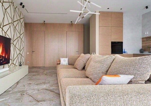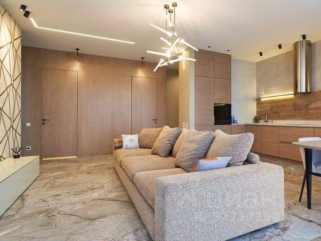 В нашей квартире, готовой к заселению ремонт "под ключ" собственник обновил всё: снес старые стены (оставил только несущие), заменил коммуникации, проводку, радиаторы, сделал надёжную гидроизоляцию и новые перегородки. Несущий столб оставил, теперь его держат фигуры изящных девушек из гипса, а барельеф и лепнина особенно красиво смотрятся, когда рядом горят огни люстры - роскошное сочетание глянцевого золотого покрытия и множества хрустальных подвесок каплевидной формы. Рожки люстры венчают лаконичные хрустальные круглые элементы. Воздушный и искрящийся образ модели восхищает воображение.