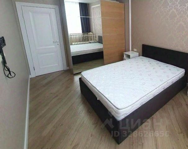В спальне есть большая гардеробная, стол письменный, выход на лоджию. Двуспальнюю кровать обновили, на фото временная кровать.