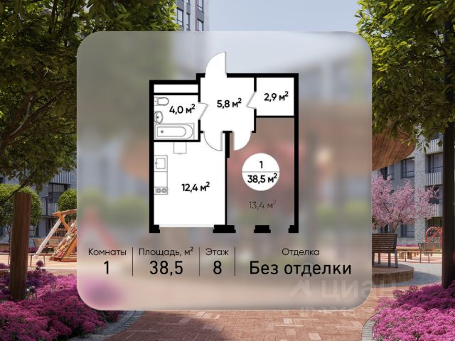 Продается однокомнатная квартира без отделки в 18 фазе города-парка "Переделкино Ближнее". Общая площадь квартиры - 40,4 кв. м, этаж 8 из 17. Срок сдачи - 2 квартал 2027 года. Тип дома - монолитный. ТОЛЬКО ДО 30 АПРЕЛЯ выгодные условия на приобретение квартиры в ипотеку или рассрочку. Звоните - и мы подберем оптимальное предложение под ваш запрос! Корпус состоит из 12 секций c переменной этажностью 8-17 этажей. Город-парк "Переделкино Ближнее" расположен в 8 км от МКАД по Боровскому шоссе. ТРАНСПОРТНАЯ ДОСТУПНОСТЬ: - 10 минут пешком до МЦД-4 "Мичуринец" - 14 минут на машине до станции метро "Филатов Луг" Сокольнической линии - 15 минут пешком до станции метро "Рассказовка" Солнцевской линии - 30 минут до центра Москвы - Прямой выезд на дорогу Солнцево-Бутово-Варшавское шоссе, минуя жилую застройку всего ЖК РАЗВИТАЯ СОЦИАЛЬНАЯ ИНФРАСТРУКТУРА: - 7 детских садов, 3 школы - детская музыкальная школа имени Б.Л. Пастернака - поликлиника для взрослых ГБУЗ ГП 212 ДЗМ филиал 70 - пожарная часть 66. Аварийно-спасательный отряд 6 ГКУ - банки, продуктовые магазины, аптеки, фитнес центры, салоны красоты и пр БЛАГОУСТРОЙСТВО: - дворы без машин - игровые зоны и развивающие детские площадки - детские площадки разделены по возрастным группам - зоны для пассивного отдыха - зоны для занятий спорта ОСОБЕННОСТИ АРХИТЕКТУРЫ: - переменная этажность открывает видовые характеристики на реку Алешинка и на лесопарковую зону - увеличенное остекление в квартирах - высокие потолки от 3,03 м. - безбарьерные входные группы - колясочные в каждой входной группе - кладовые помещения расположены на -1 этаже каждой секции и на 2-17 жилых этажах в секции 11 - коммерческие помещения на 1 этаже в 11 и 12 секциях - в секциях 2-4, 6-7, 11-12 по 2 лифта: 1 пассажирский, 1 грузовой - в секциях 1, 5, 8-10: 1 грузовой лифт - мусоропроводы в домах не предусмотрены, запроектированы специальные зона для сбора мусора - на фасаде предусмотрены корзины для установки кондиционеров. - видеонаблюдение установленное в холлах первых этажей, у подъездов и прилегающей территории АВТОРСКИЙ ДИЗАЙН: Входные группы выполнены по авторскому дизайну, оснащены системой "тёплый пол". В каждой входной группе будет располагаться комфортабельная зона ожидания, почтовые ящики, колясочная, акцентные пуфы и столик.
