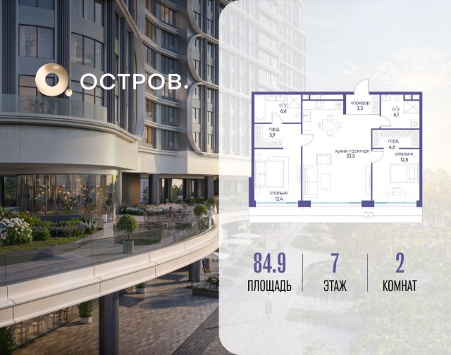 Продаётся 4-комн. квартира от застройщика: общая площадь 123.50 м², жилая 50.30 м², кухня 37.20 м², 15-й этаж, жилой квартал "Остров 12", корпус 1 (секция 2). Срок сдачи: 1 квартал 2029 года. 3 санузла (1 раздельный и 2 совмещенных). В жилой зоне 2 больших окна на одну сторону, хорошая инсоляция. Позвоните сейчас и забронируйте квартиру! ОСТРОВ от Донстрой - жилой комплекс на западе Москвы, в Мневниковской пойме. Уникальное преимущество комплекса - в том, что он обособлен от города рекой и природным парком (650 га). Благодаря природному окружению эта территория имеет лучший экологический рейтинг в столице. Кварталы ОСТРОВА объединены ландшафтным дизайном в единое пространство - с набережными и Центральным бульваром. На ОСТРОВЕ любые объекты, необходимые для полноценной жизни и отдыха, находятся на расстоянии 15-минутной прогулки. Торговый центр и супермаркеты, кафе и рестораны, фитнес, салоны красоты, школы и детские сады. А также крупнейший в Москве спортивный кластер.
